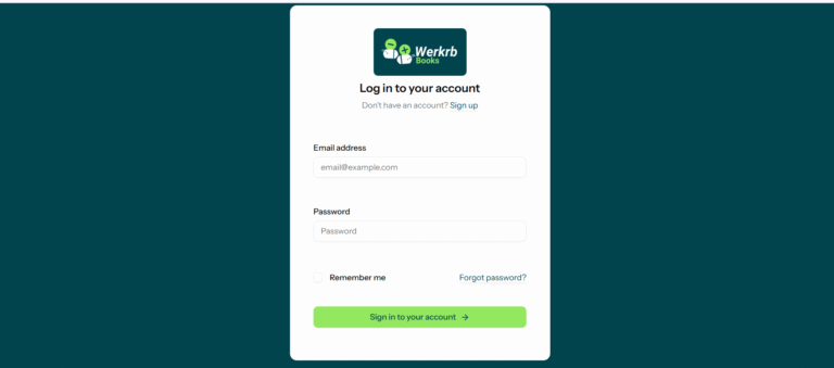 Step 1: Log In to Werkrb Books Go to https://books.werkrb.com and log in with your registered email and password. Once inside, you’ll be prompted to