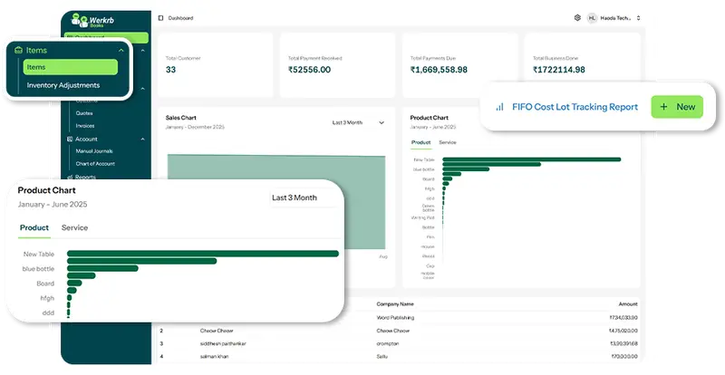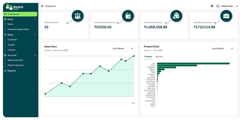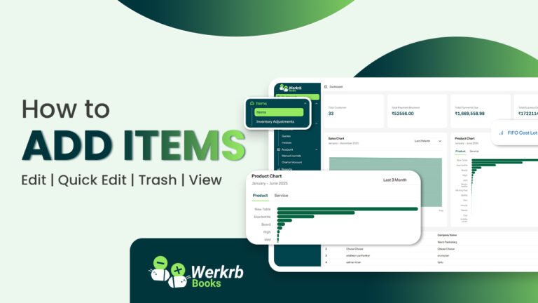 Step 1: Log in to Werkrb Books Go to https://books.werkrb.com and log in with your account. From the dashboard, navigate to the Items module in