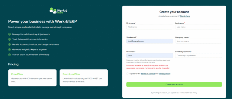 Step 1: Visit the Werkrb Books Website Head over to https://books.werkrb.com.On the homepage, you’ll find the “Sign Up for Free” option. Click it to begin